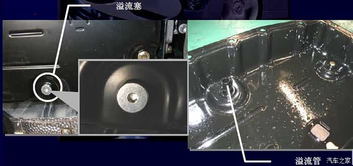 这是底面上溢油口螺栓和溢油管的结构