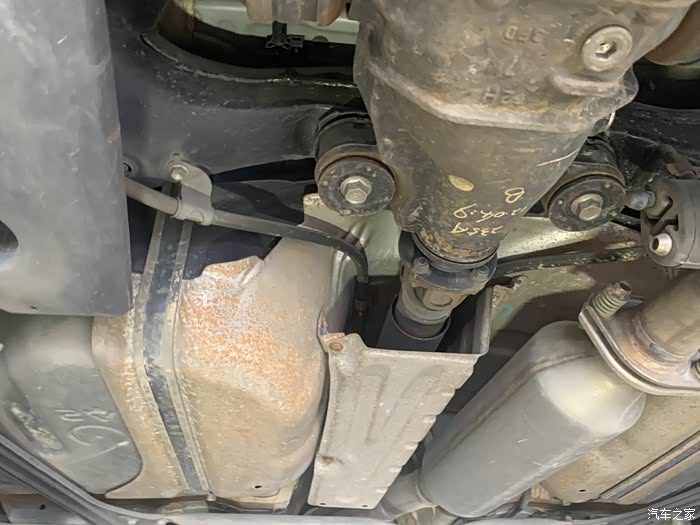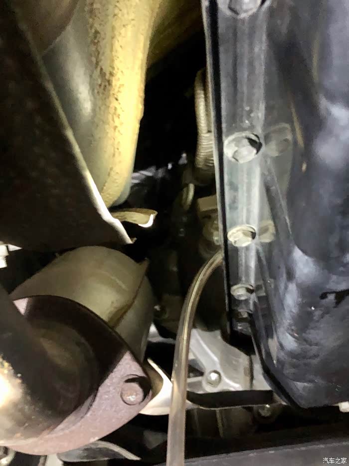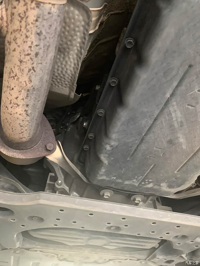 盖板拆下来了, 不费什么力气。整个保养不用动排气管吊架什么的,空间虽小,但是还是可以操作的。