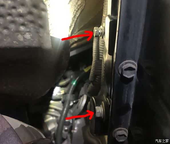 先找到加油口塑料盖板, 用10的套筒拆下2个螺丝。