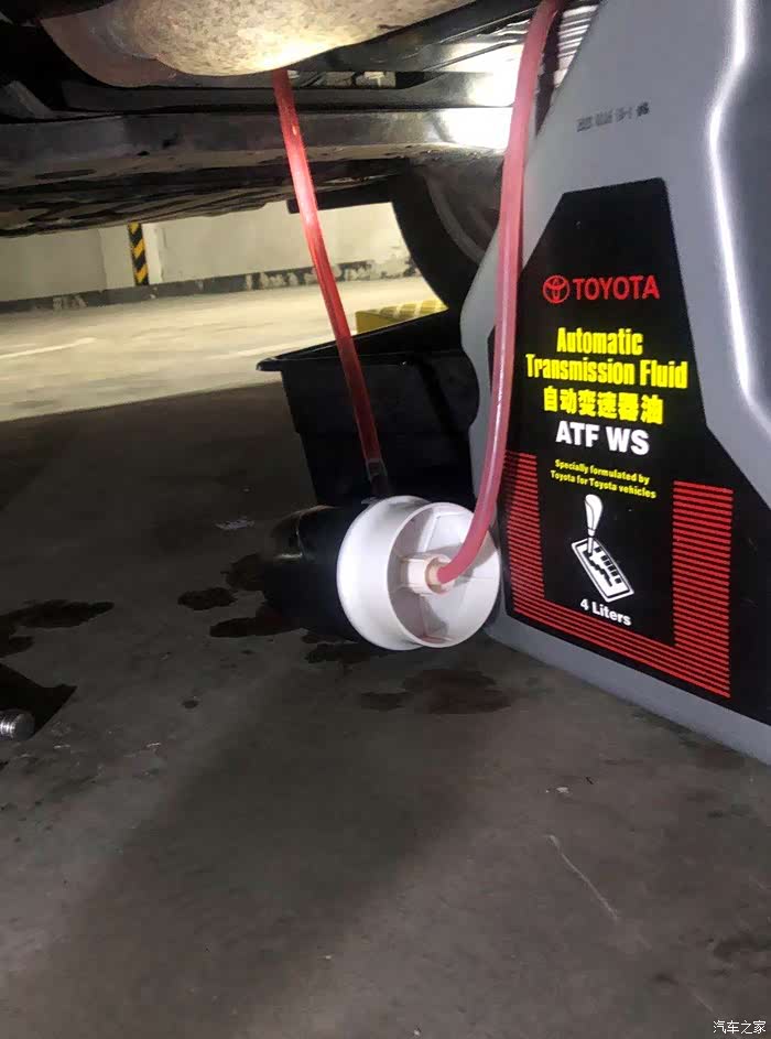 用的是丰田的ATF WS,加油神器就这样放地上,每按一次工作一分钟,可以打1L油左右。
