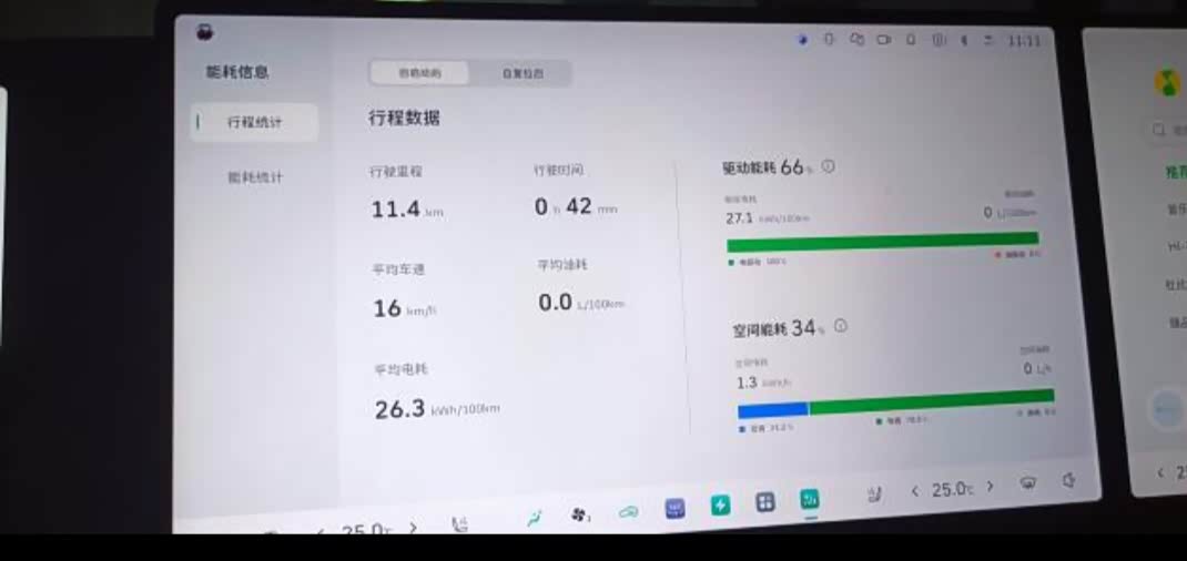 送完东西一共跑了11.4km,主要是市区里,我开车很温柔,平均电耗26.3kWh/100km。