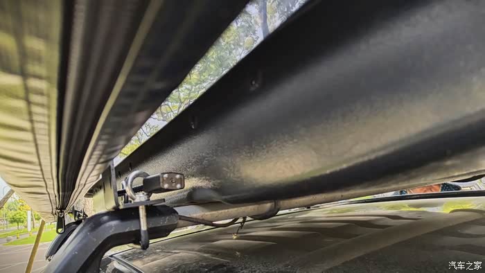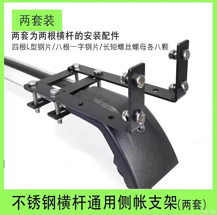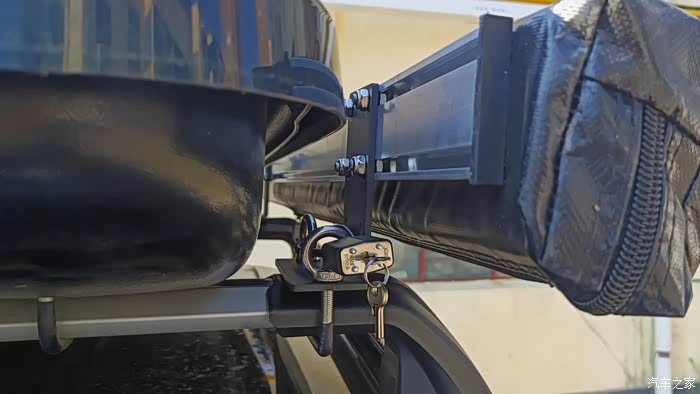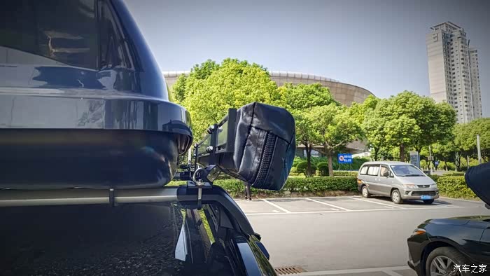 预订后不久便收到了车边天幕。如果按照品牌方的安装方案,用所配的L型固定支架配件占用空间大,需把之前居中安装的车顶行李箱向一侧移动,不仅安装稍微有点复杂,关键还影响美观。