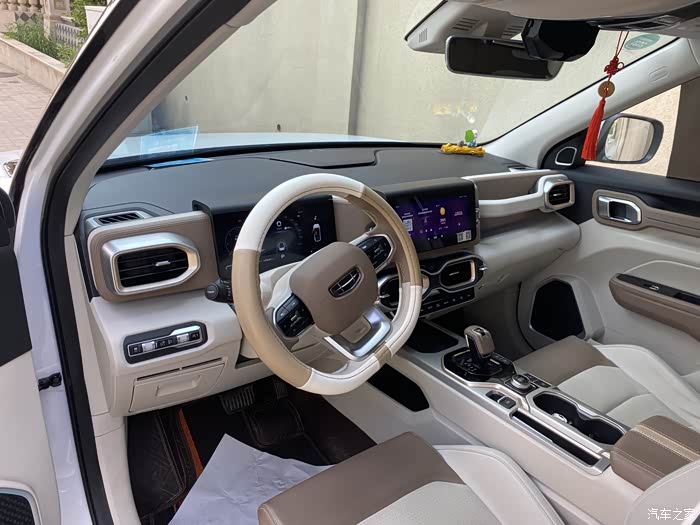 白棕色的内饰,很有档次,但是比较容易脏,打理起来比较麻烦。