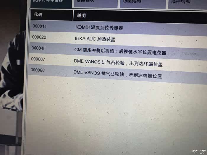 VANOS未达到终端位置:意思就是VANOS可变正时系统有故障,实际位置与期望的位置不一样。这应该就是冷车启动不顺畅的原因,因为正时的位置不对,燃烧不稳定。