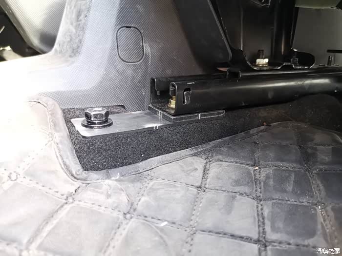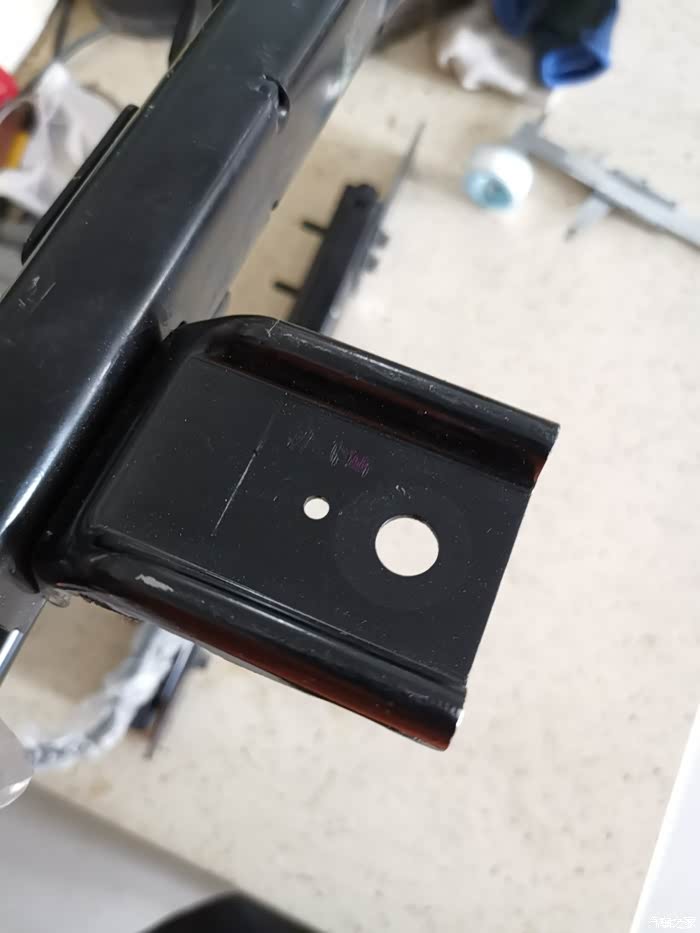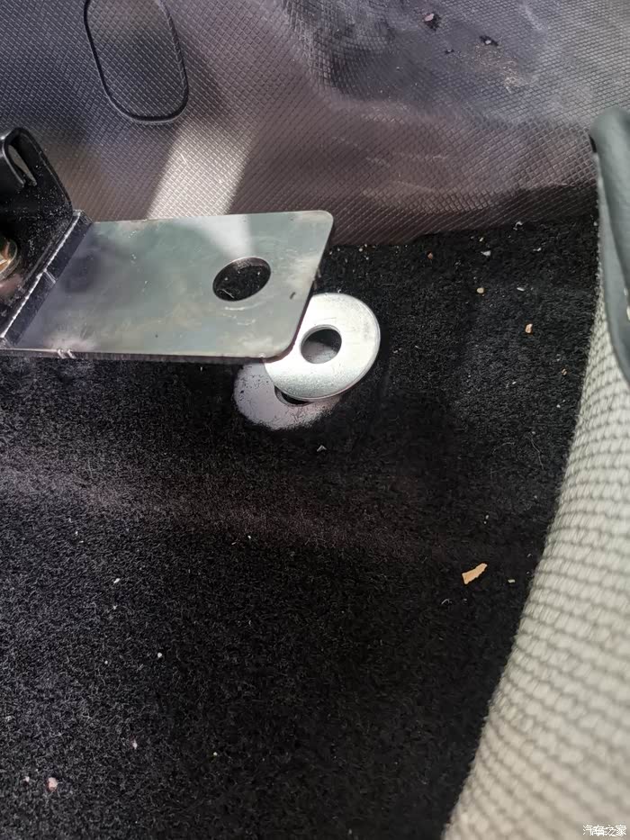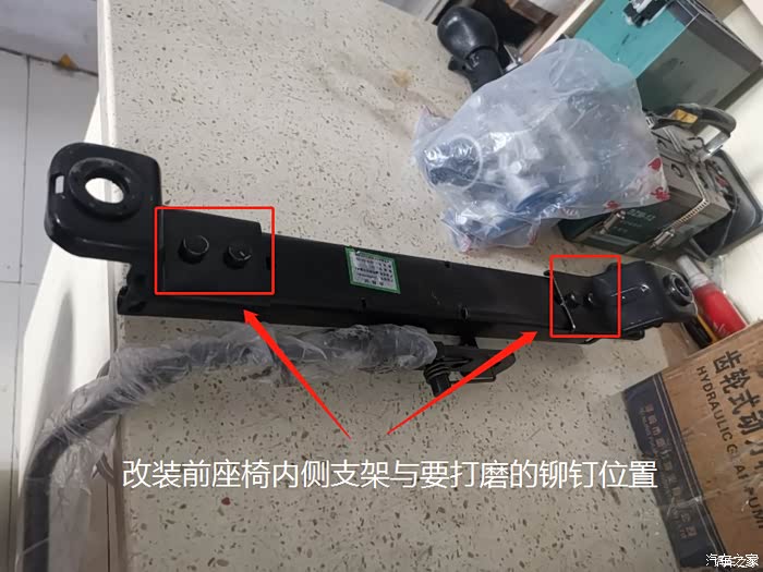 改装前座椅内侧支架与要打磨的铆钉位置