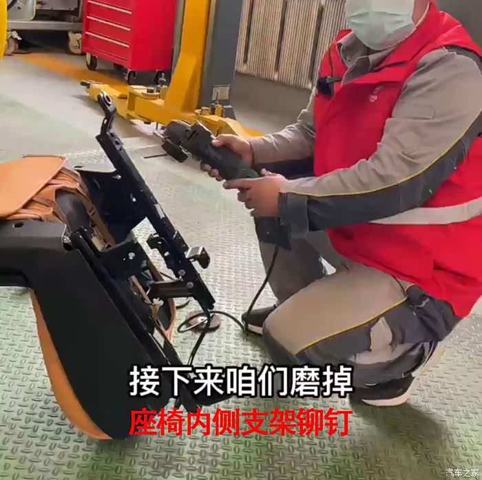 接下来磨掉座椅内侧支架铆钉