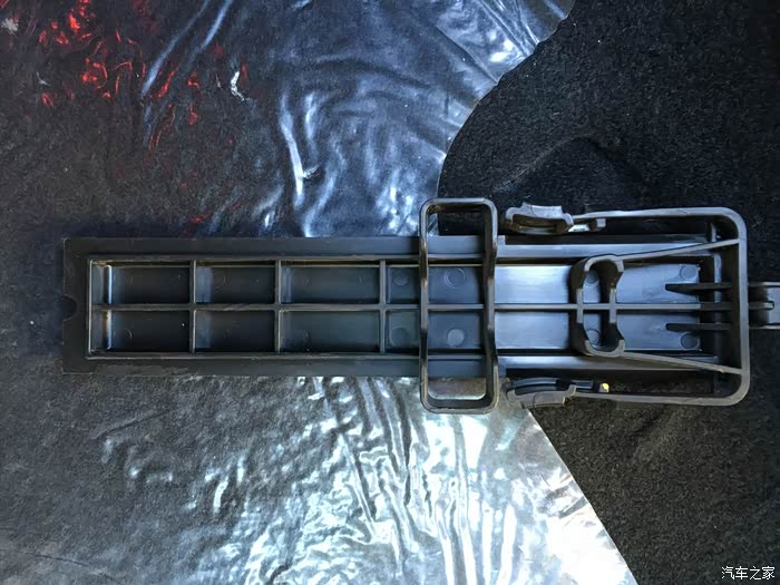 左侧的空调滤芯扣板,按压下图中的位置,就可以轻松拿下来。
