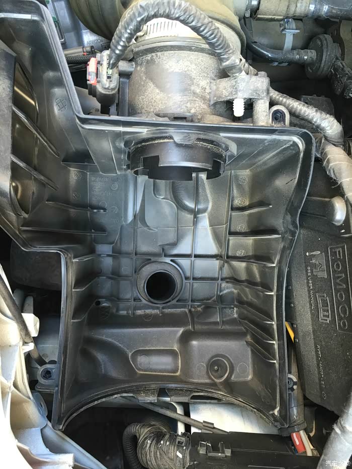 新福克斯的空调滤芯比较容易拆掉,把副驾驶的接电盒上的盖子拆掉,里面能看到两根连接中控和行车电脑的线,网上有些车友是把线拔掉,方便更换,但是行车数据会丢失,我没有拔掉线,直接更换空调滤芯。