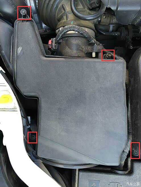 打开引擎盖,找到空气滤芯的位置,固定盖子的有四颗螺丝,用套筒拧掉(注意螺丝别掉到发动机舱了)。