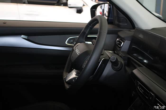 真皮包裹的方向盘手感不错,很轻