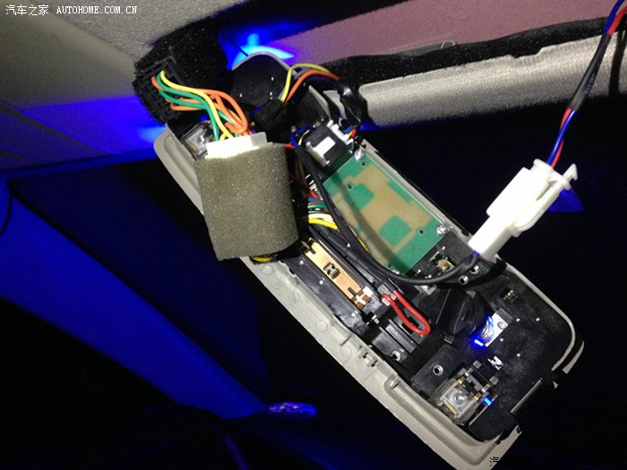 盖上阅读灯总成。前面连接后视镜的插头,为了以后拆装方便