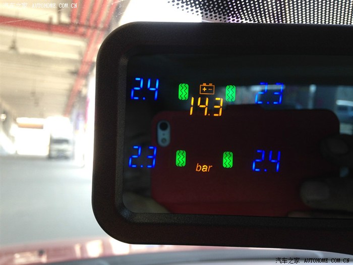 在不知情的情况下,轮胎被扎了,跑了好久才发现,轮胎差点报废,所以决定加装一个胎压监测,开始想装在导航上的,但是导航上装了好多东西,生怕有什么冲突,所以直接选了一款带后视镜显示的。胎压, 温度,电压,一体显示,带报警更改。