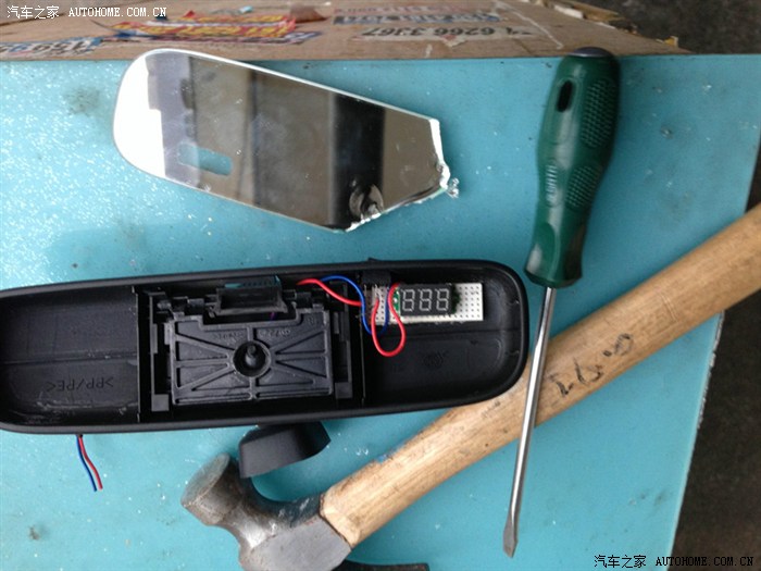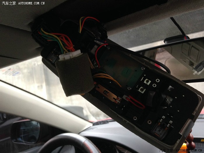 方案是:从天窗取点电 ,把原车后视镜的卡托装在,新的镜子后面