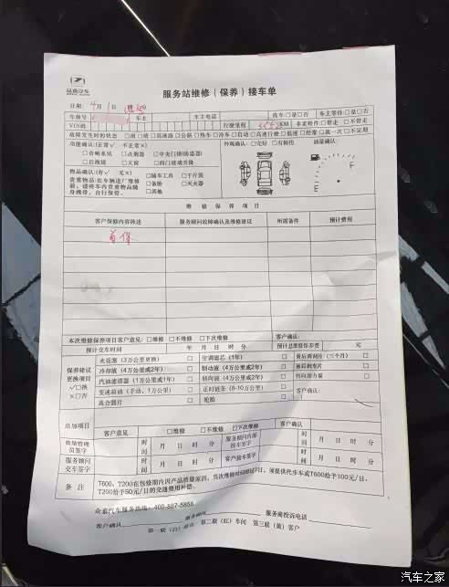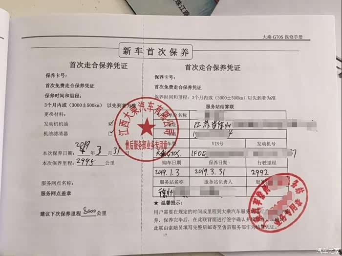 服务顾问说我的车子是之前预约好的,不用等待,直接就可以给做首保了,请我出示购车发票,行驶证,保修手册,因为首保是厂家免费的,需要出示证件。