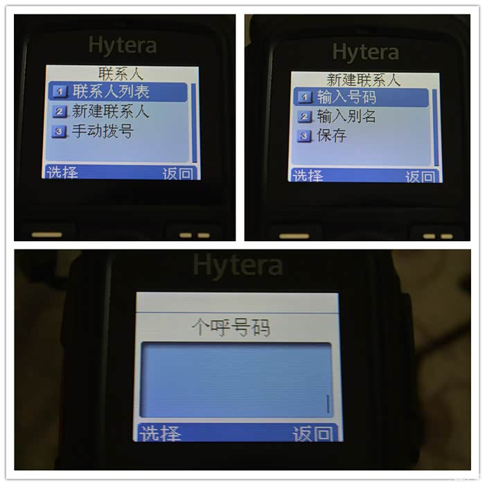 联系人跟手机的联系人一样,联系人列表、新建联系人、手动拨号。新建联系人需要输入号码、别名再保存。号码,输入个呼号码即可,以后就省的再拨号呼叫了。