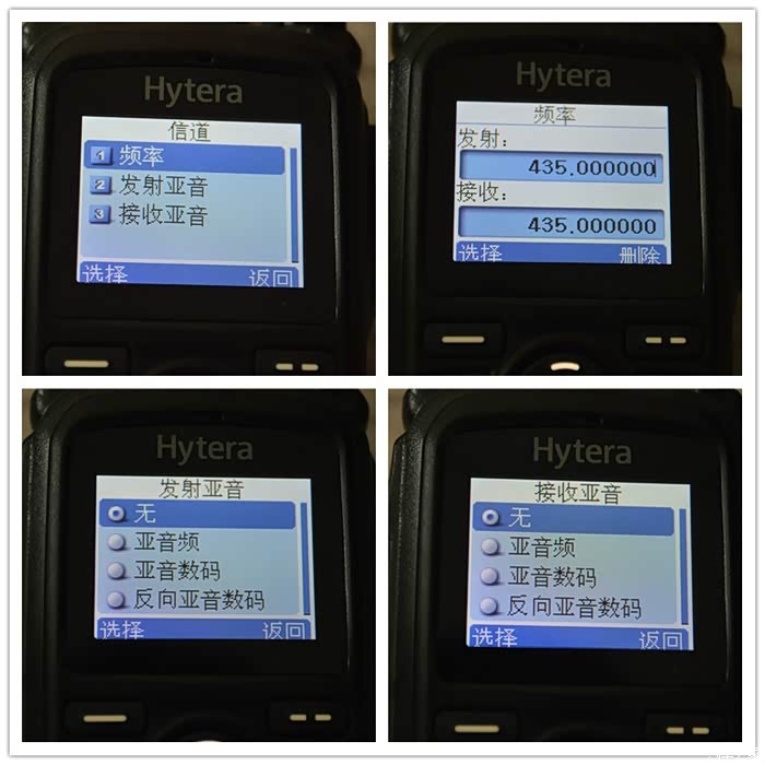 信道编程有频率、发射亚音、接受亚音的菜单,更改发射和接受频率是大家平常用的比较多的功能之一。当然了,这里要提示一下,频率是不能乱改的,要根据国家无线电管理规定和当地无线电管理规定。