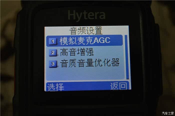 第四功能:设置,分为音频设置、对讲机设置、设备信息。