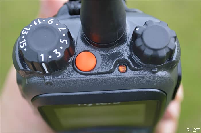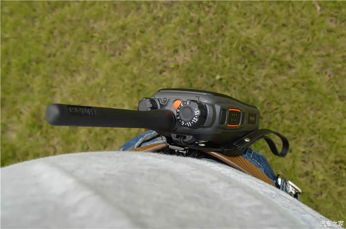 对讲机、对讲机,成对才好玩。中置天线设计,很特别,也很有用,掉到地上,从左还是从右落地,天线对两侧的旋钮都会起到保护作用。