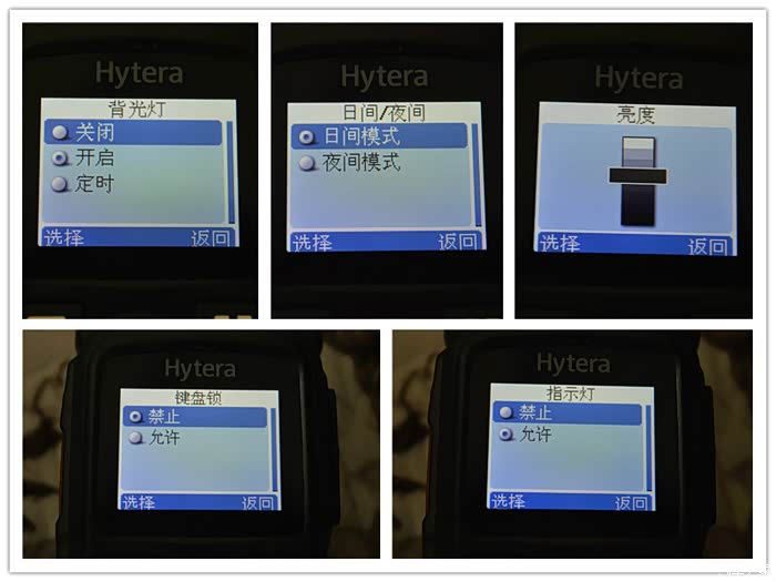 背光灯有关闭、常亮开启、定时选项。日间/夜间可以切换,发现夜间屏幕要暗一些。亮度根据当时外界环境来选择适宜的亮度。因为有很多功能机和数字键,需要开启或关闭键盘锁,防止误操作。再特殊环境也可以调整指示灯,比如在黑夜里埋伏抓捕,就需要关闭指示灯,以免打草惊蛇。