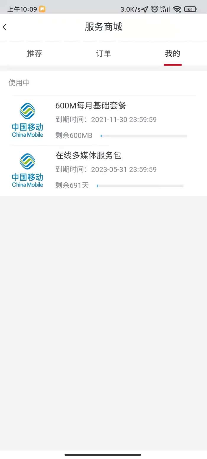 你会发现长安送了大概半年的600M每月基础流量,和两年的在线多媒体服务包。