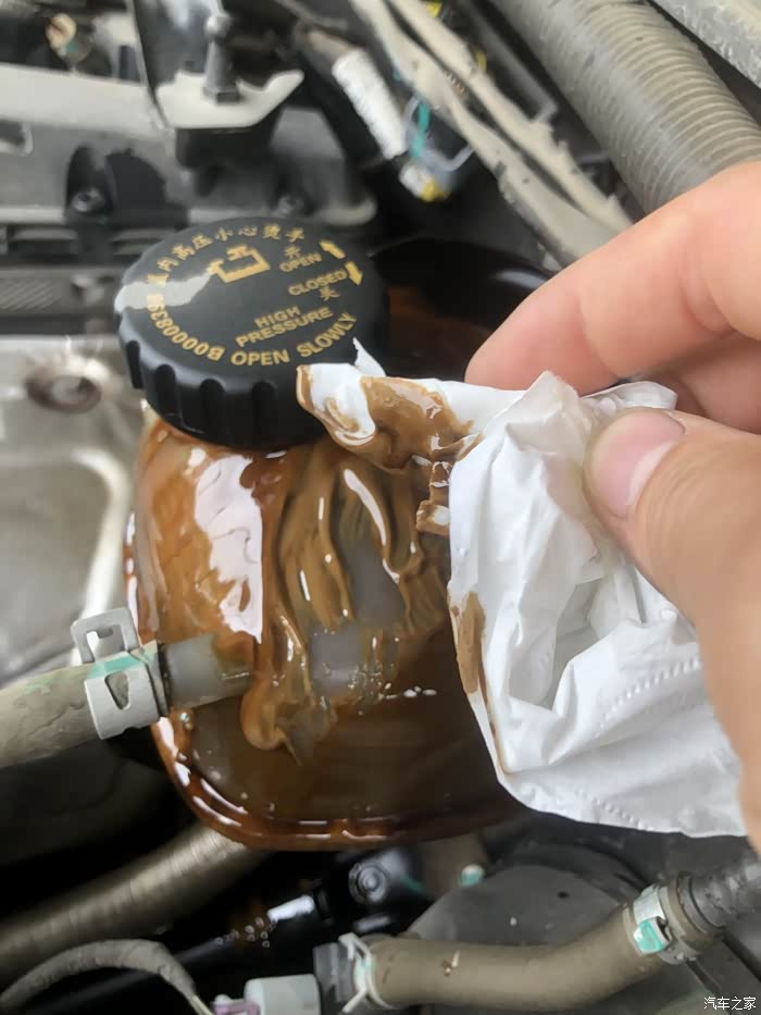 2.3T发动机行驶过程中水温爆表,停车检查发现机油散热器故障导致过热,导致机油冲入水槽从而进入水箱!是不是应该感谢北汽,又让我长了见识!