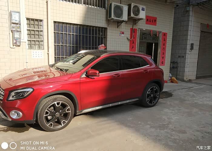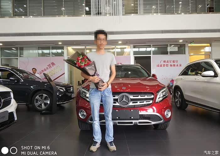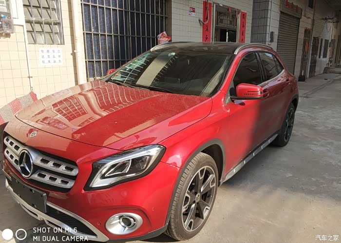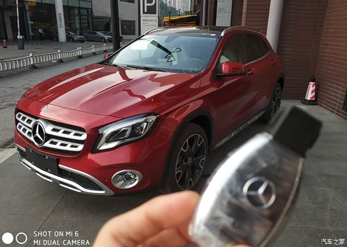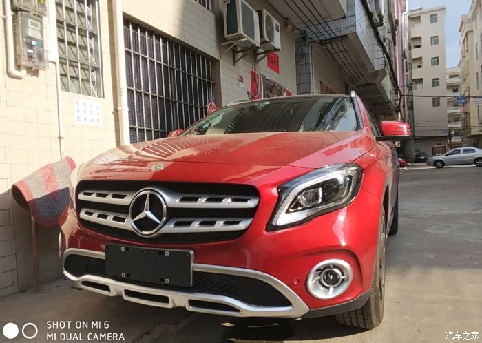 本人是一位年轻的90后,今年20多出头,跟着老爸走南闯北赚了点钱,年轻人嘛,身上有点小钱就耐不住寂寞,于是走上了选新车的路,该死的虚荣心!!!!嗯,进正题吧。。这辆GLA220是我人生中第三任情人,在购小G之前真的考虑过很多40万以下车型,原来首选锐志(嗯,首选它的原因是后驱V6,但13款的车型,吐血,等了好几年都不更新车型,后来等不及放弃了),然后又去看新款汉兰达的7座四驱导航版(哇,真TM高大尚,空间真宽敞,看见它的这一秒就想着哪天用它来个***试下感受“希望这帖别让我老婆看见”,看完汉兰达后回家跟兄弟朋友们说,后来突然某位朋友冒出一句:我朋友新车落地没多久,上高速发动机炸了!!!炸了!!!炸了!!!,嗯没错,我听到这句话,立马又放弃了,其实我上一台车是哈弗H6,知道车身重,动力不足,起步肉的问题,所以汉兰达我是有所犹豫的,被朋友这么一说,更决心放弃了),又开始走起重新选车的路,朋友说宝马X1吧(不喜欢,两个大鼻孔,面相学吧,大鼻孔破财,还有那个鸡蛋那么大的标志,不顺眼),奥迪Q3我也去看了,明显没有Q5的造型那么顺眼,感觉很短很短,还有外观所有部件都四四方方的,不喜欢。最后走向奔驰,嗯,因为不喜欢桥车,直接看的SUV,因为心目中的价位是在40万以下的,没办法,只有去看GLA,其实GLA的车型我早在一两年有看过。只是没留心去全面观察。直到那天去到奔驰4S店,那个GLA真吸引眼球,特别是那个大奔标志,特大气,当时展车只有200时尚白,220时尚棕,经过一番验车和试驾,销售员也跟我做了很多车的对比,也和旧款的GLA做了对比有哪些改动。坐在4S店的沙发上,经过一番思考,与之前想过的,看过的车型,做了对比,价钱都是同价位的车,我为什么要去选择那些中端品牌,而不选择世界第一品牌奔驰呢。所以落定决心了,和销售开始谈价钱,最终谈下来的价钱是35.5万落地,送全保、送无匙进入系统、镀晶、防爆膜、车衣、第四年质保、7000元售后保养卡。拿着报价表回家,找了一位做汽贸的朋友,托他帮我问下这车型的最低报价,得知4S价格是有优势的,最后决定掏钱包订车,2017款GLA220时尚型 锆石英红色,订车时间为8月17日。。。订车合同上写明是15天内交车,哎呀,第15天到了,真是一波三折,广东台风源源不断!什么天鸽啊,什么玛娃啊,不知道是谁起的台风名字,又水浸又地震的,把提车时间推迟了很久。好事多磨,终于9月12日那天等到了心爱的GLA来到了4S店,一收到销售的电话,立马坐火箭飞过去。什么都不多说了,下面看图。