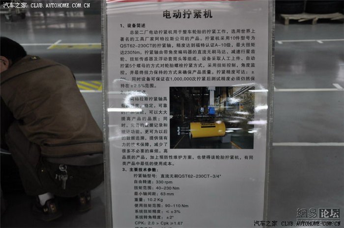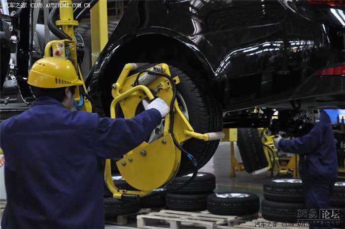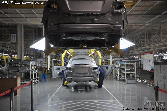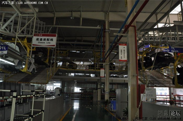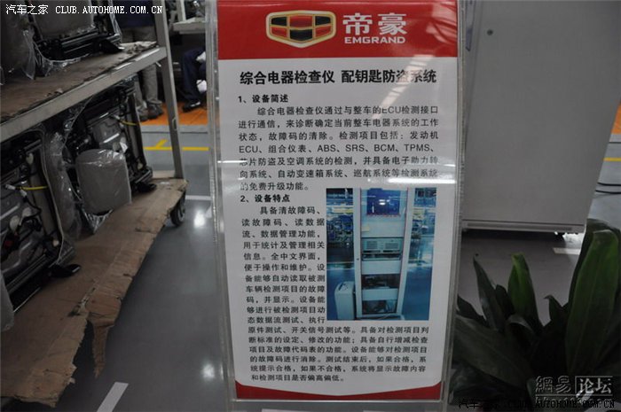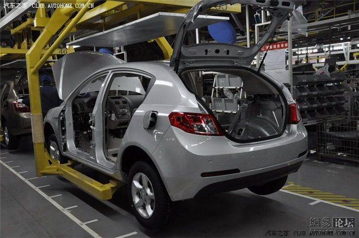 总装车间面积不是很大,但是装配工艺和设备都非常先进。采用模块化组装模式。生产线上的车型颜色不一,均是根据订单来排序的。目前EC7系列的需求量非常大,所以必须在经销商支付全款后才会下单生产。