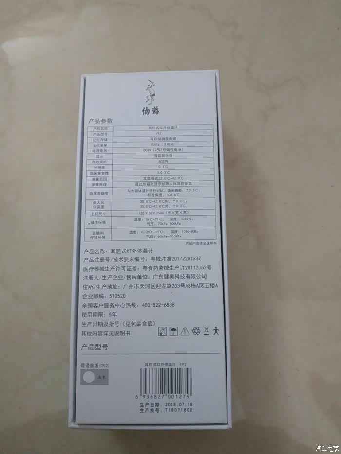 两用红外体温计,支持额头及耳朵两处温度采集。使用便捷,轻轻一按即可显示示数,支持语言播报。当检测温度高于37.3度时,屏幕背光变为橙色,机器发出蜂鸣提示。开机后对准额头轻按一下即可播报当前示数,当检测耳温时取下保护套,对准耳道轻按一下即播报示数。两节AA电池,持久耐用,有效使用约60天。一键查询最近7组测量数据,及时掌握一天内体温变化,方便治疗前后比对。高清大屏老人也能看的清的读书。机身流线型设计,符合人体工程学,握感舒适。