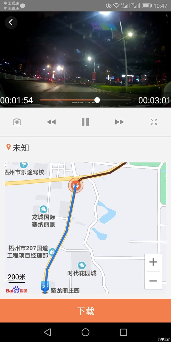 点开相应的视频能够在手机上监看视频,并能显示该段视频的位置轨迹。