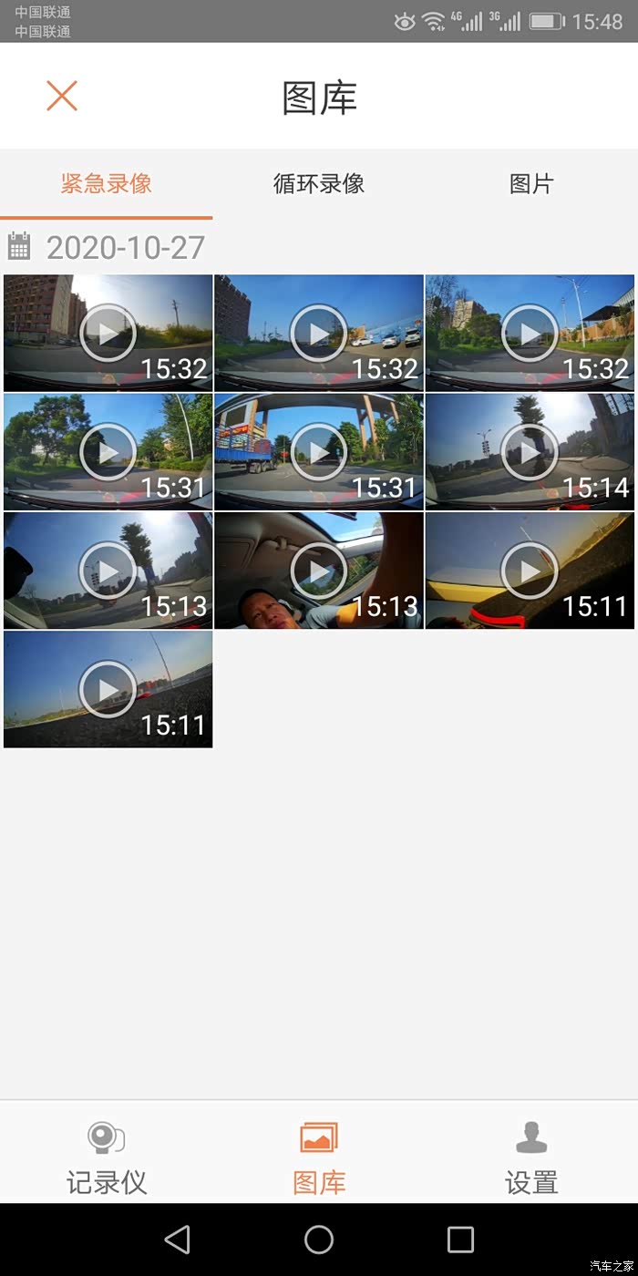 紧急录像界面记录的是车辆行驶过程中发生的不稳定状态下的视频片段,这些片段不会被自动復盖,以便保全紧急情况的视频片段,但经实际使用发现,这个紧急录像有些神经过敏,比如一些急转变和一些过坑洼时的录像都会保留在这里。