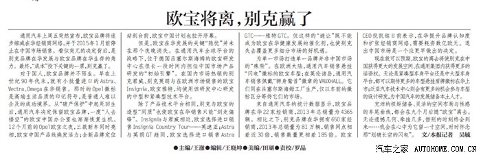 2014年04月02日《北京青年报》汽车版发表一篇***“欧宝将离,别克赢了”,其中两处提到君威。
