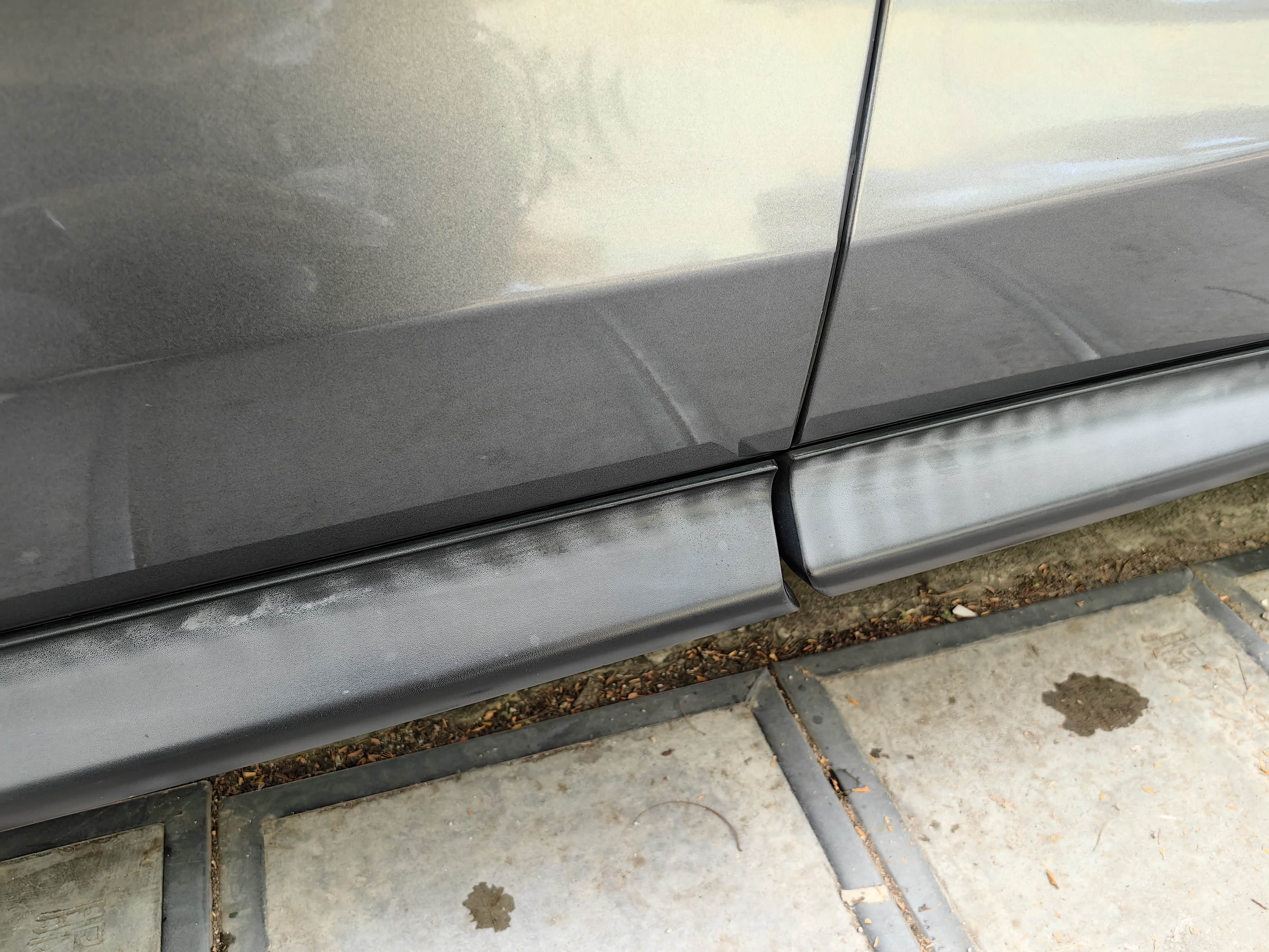 车门下面的装饰板有非常明显的一条一条发白的痕迹。