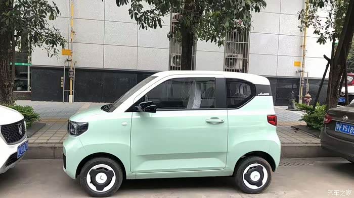 相对于之前上市的宏光MINIev来说,马卡龙在配色方面,选用了更可爱,更清新的色彩,外加白色的套色车顶,外观设计更时尚清新。