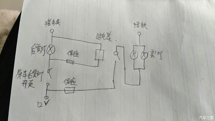 简单画了一个原理图,懂点的应该都能看懂吧,大家注意千万不要把后雾灯和前雾灯直接接到一起,一定要用继电器。