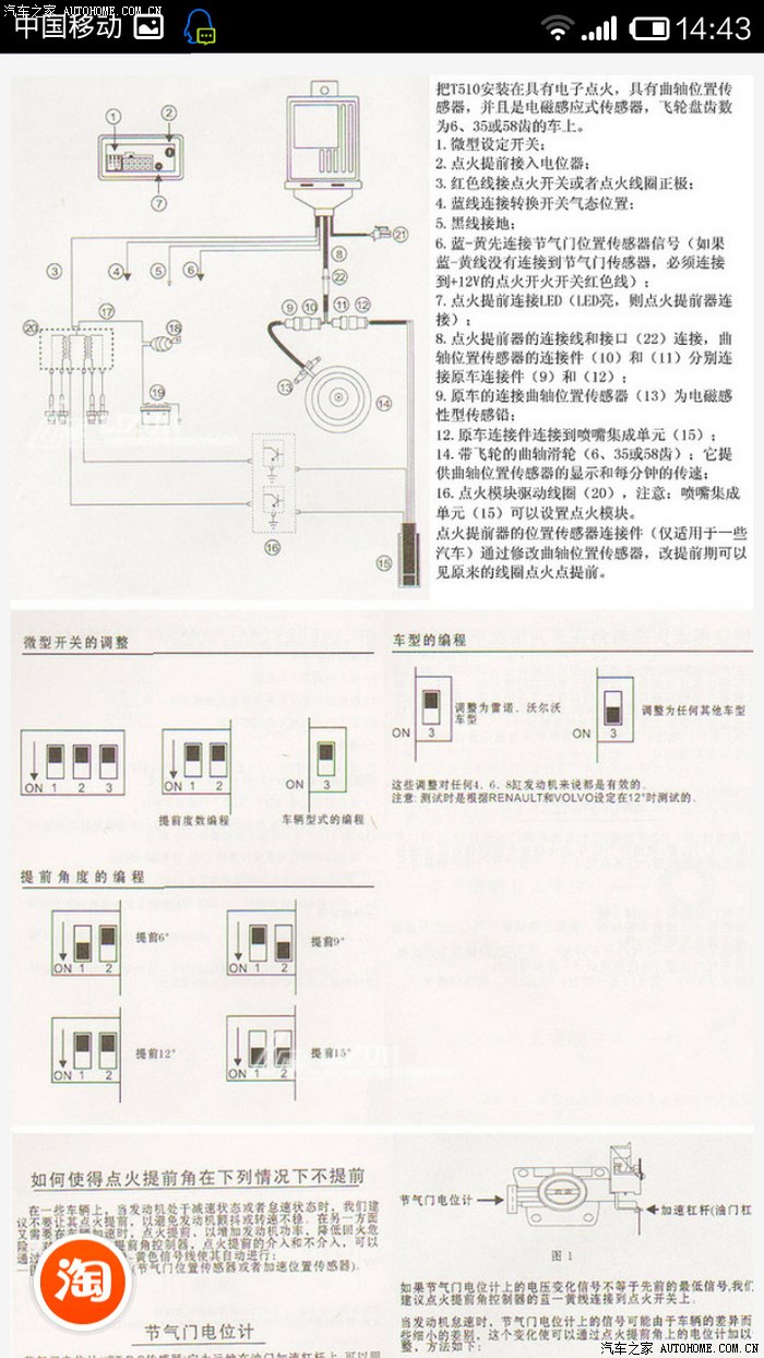 1. 提前角设定:由开关1、2组成,详见下表,本人选择12度和其他车辆