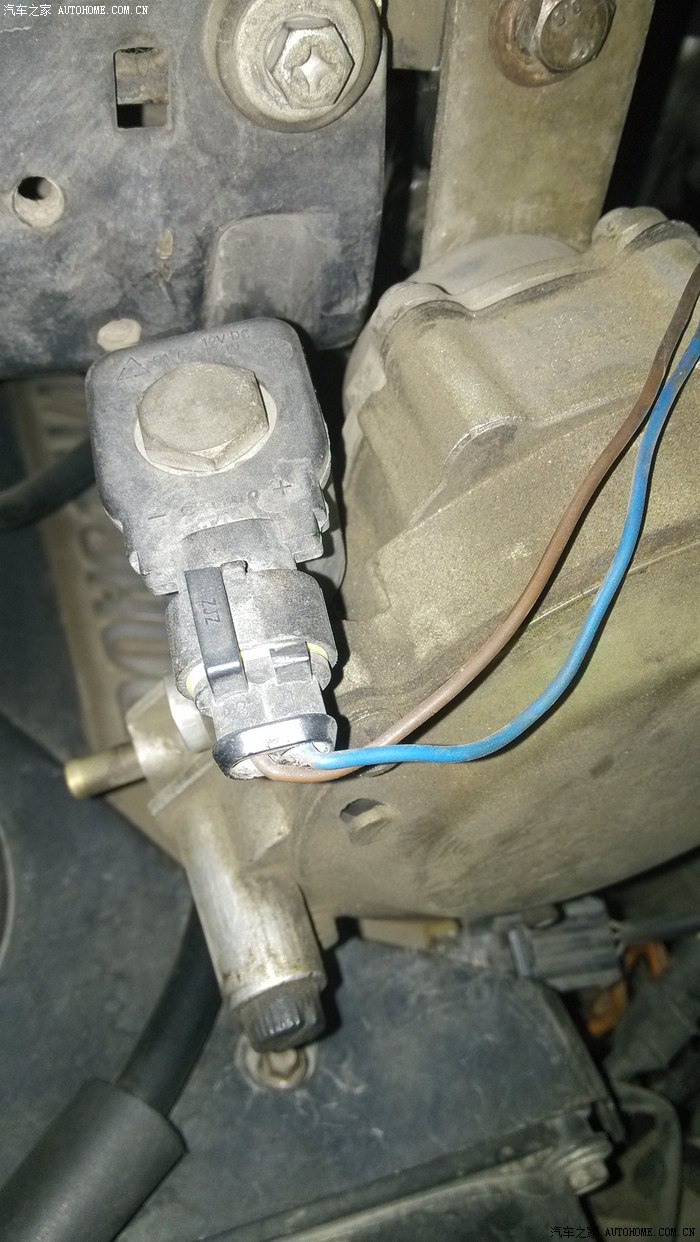 接好曲轴线束后在来接电源线,电源在减压阀的电磁阀上,电磁阀的电源只有2根线有正负之分的,若判断不了正负时用万用表吧,一般电磁阀那2根线有黑线,黑线就是负极,把买来的线束红线和蓝线并在一起接电磁阀的正极(我的电磁阀正极线是蓝线)黑线接电磁阀的负极(我的是棕色)