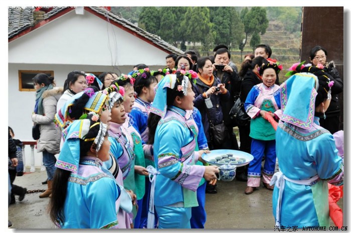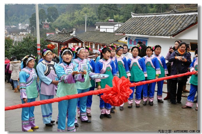 布依姑娘们温情拦门,欢唱着敬酒歌。