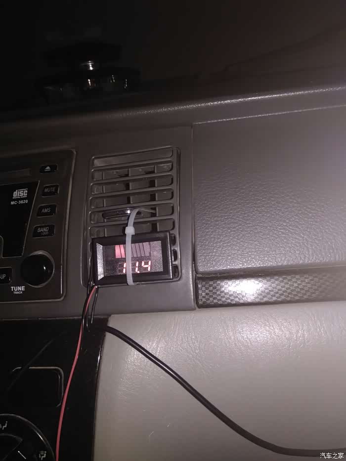 找不到合适的地方,先挂在空调出风口,电瓶电压11.4V