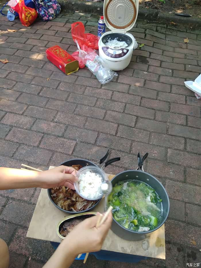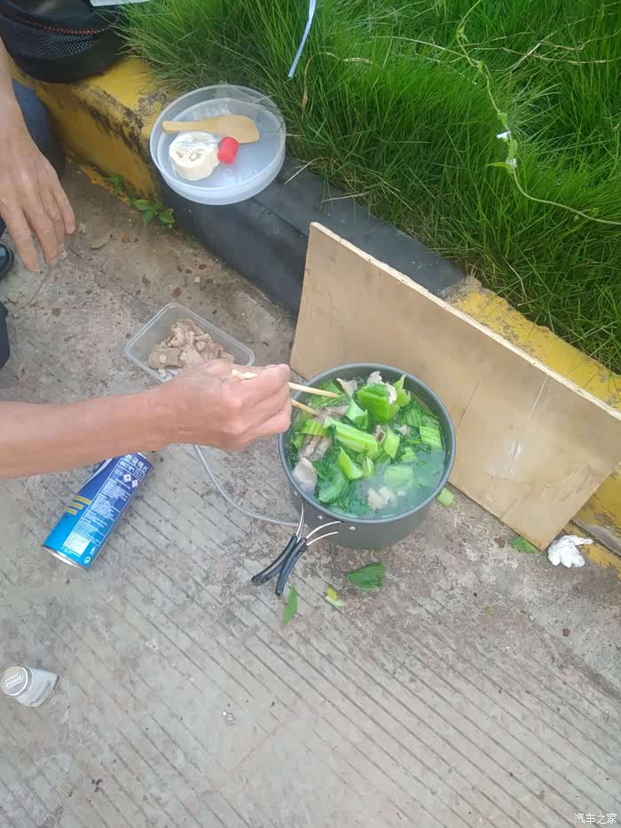 11:00时,在服务区开始煮饭,打算12:00左右吃饭,但是大家说,肚子不饿,到下午1点再吃饭。