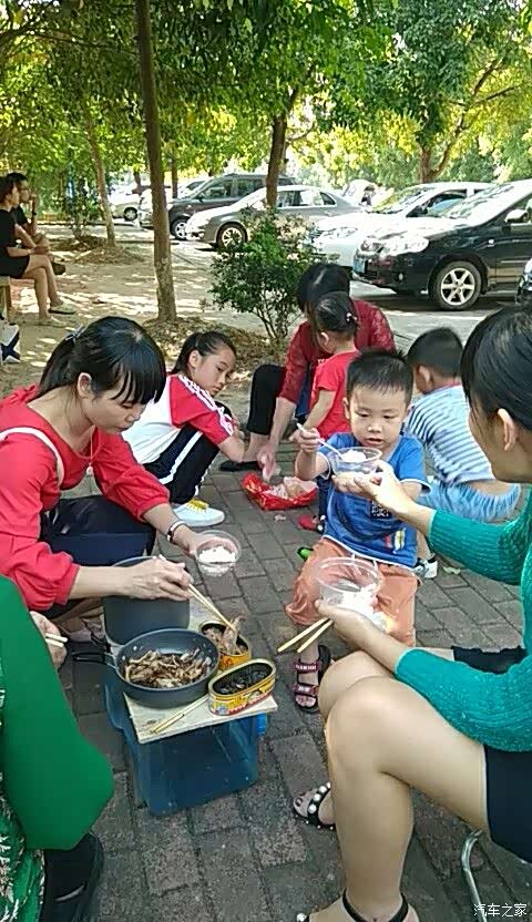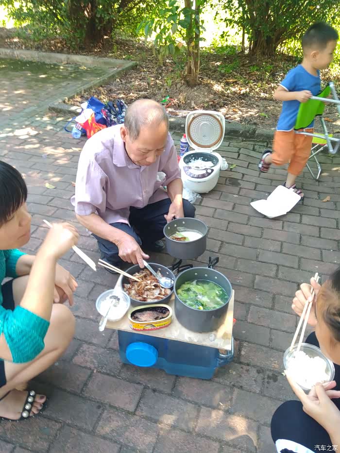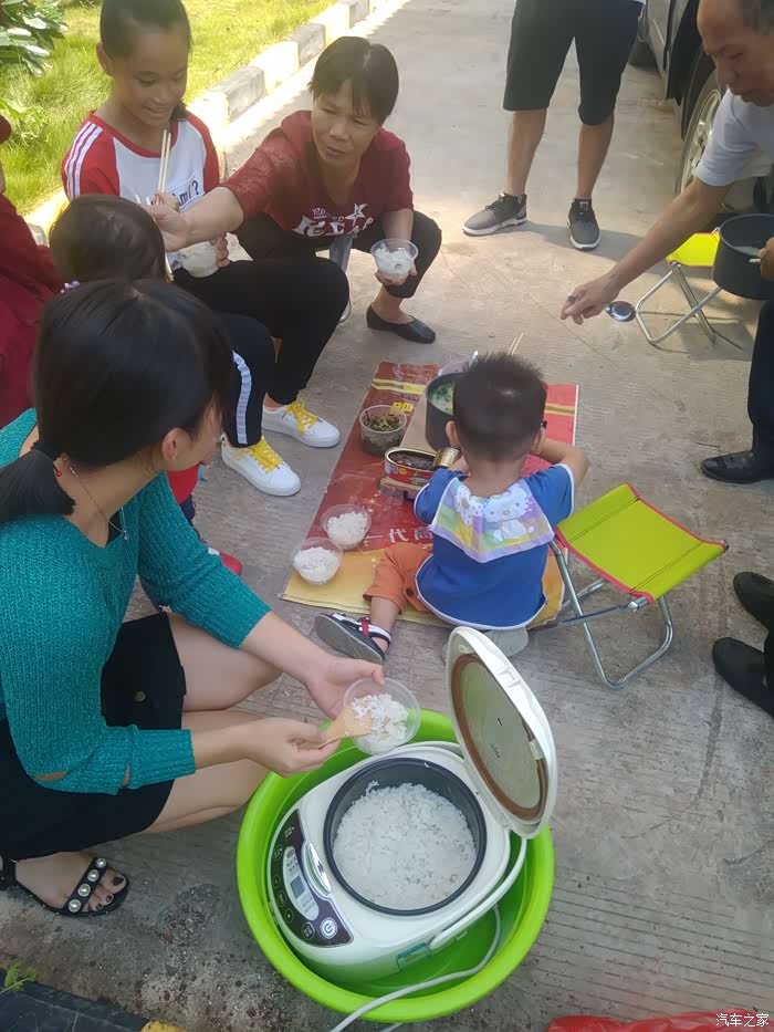开饭啦,好热闹,好多车友看,可能他们觉得新奇吧,有个车友还来问我怎样弄。