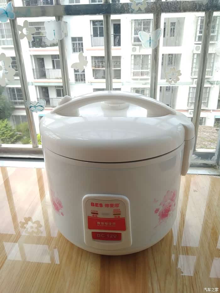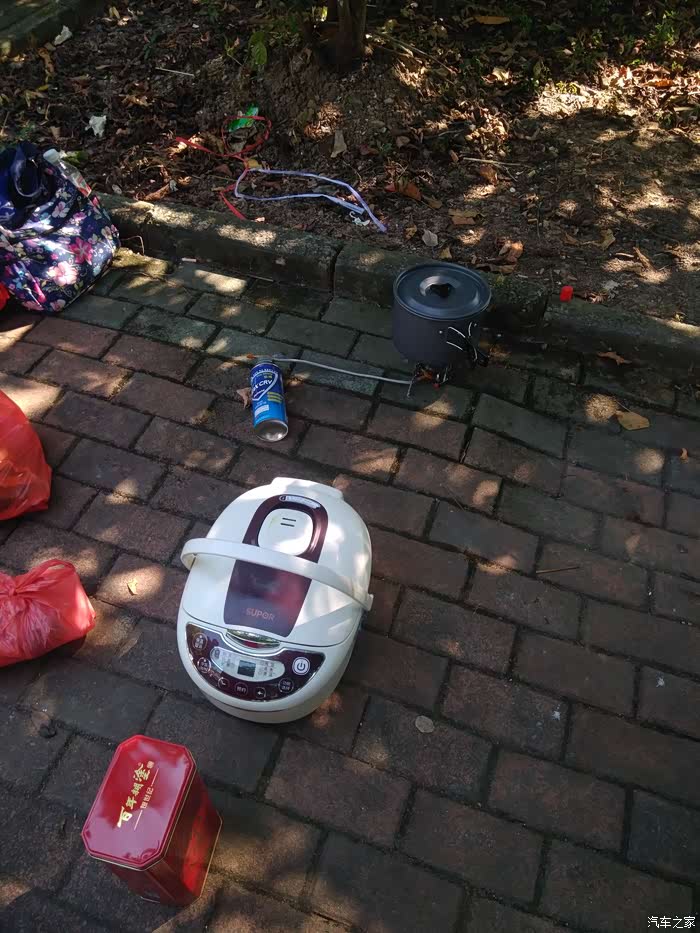 再跑了几十公里,在车里闻到了饭香的味道,到下一个服务区的时候,我停车开尾箱看,饭已经煮熟了,进入保温模式。