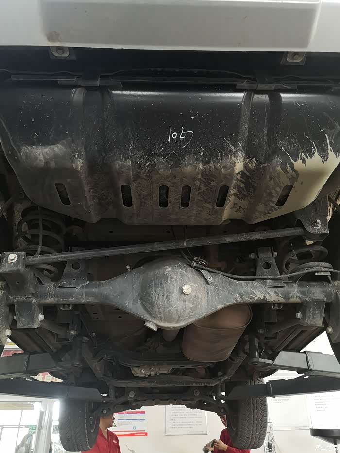 首保看底盘,没有生锈的地方,也未发现异常。我拿手电筒照着仔细看了一圈。