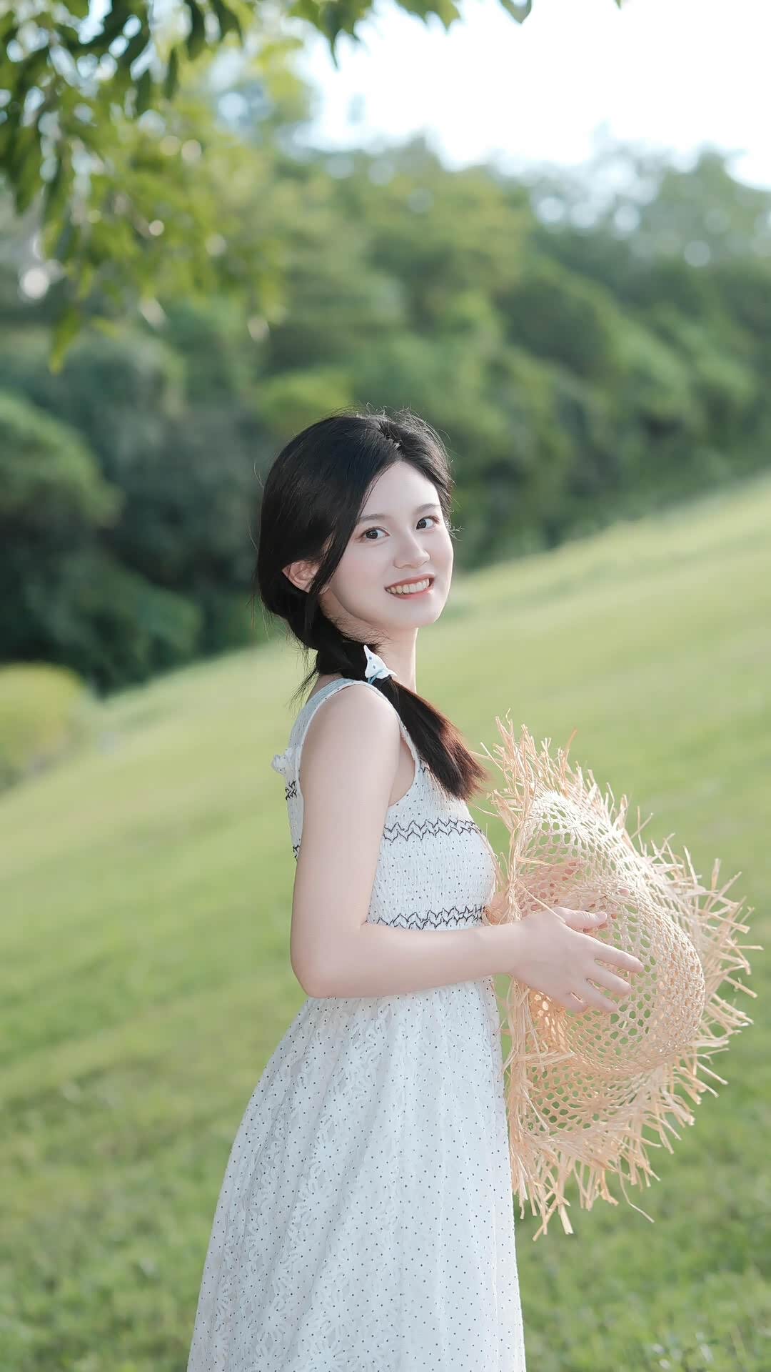 这些元素组合起来,不是“为了好看而堆砌”,而是在讲一个故事:一个女孩在夏天的郊野,穿着喜欢的裙子,戴着草帽,用最舒服的方式和自然玩耍。