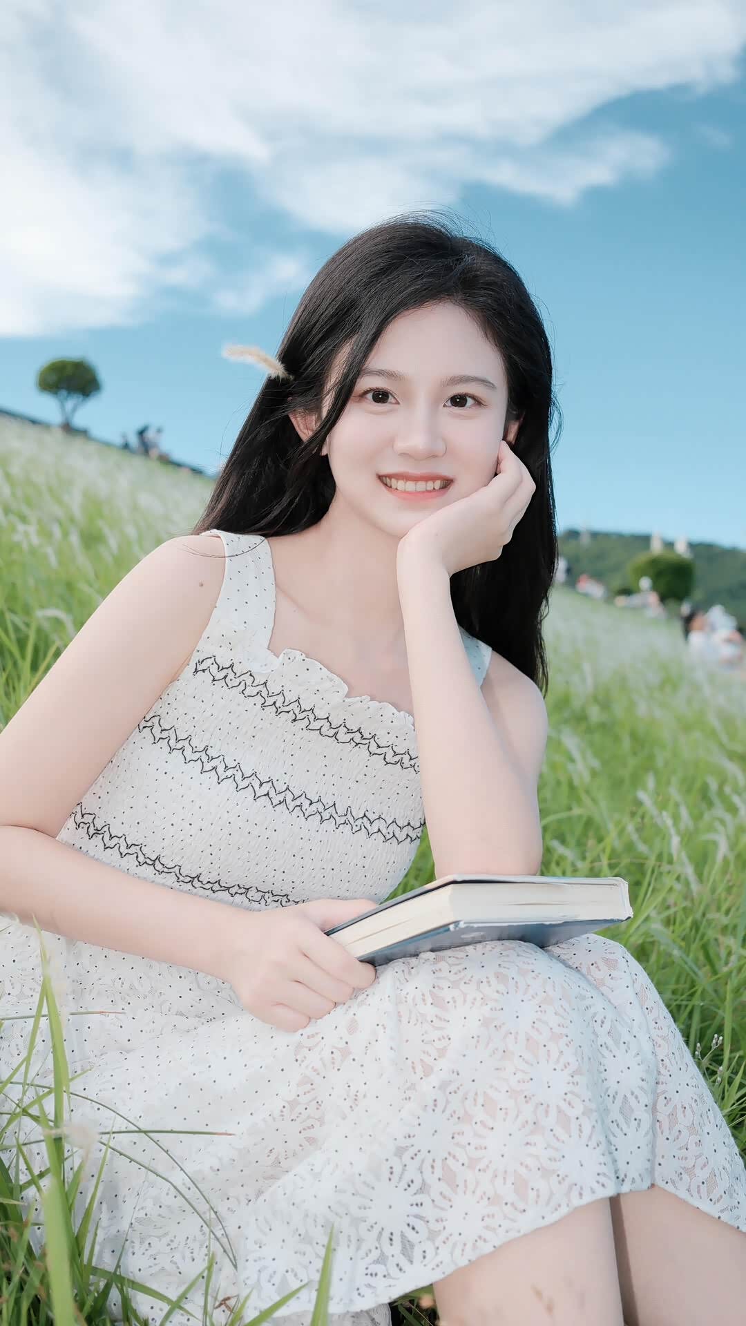 - 情绪引导:比起“看镜头笑”,我更注重引导小冉“与场景互动”。比如让她专注地看着手中的小物件;让她低头看书,发丝被风吹落在脸颊;让她对着草穗“吹气”……这些互动让她的情绪自然流露,“少女感”也随之变得真实可感。