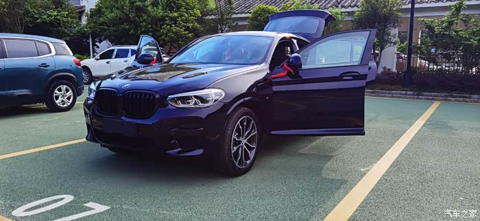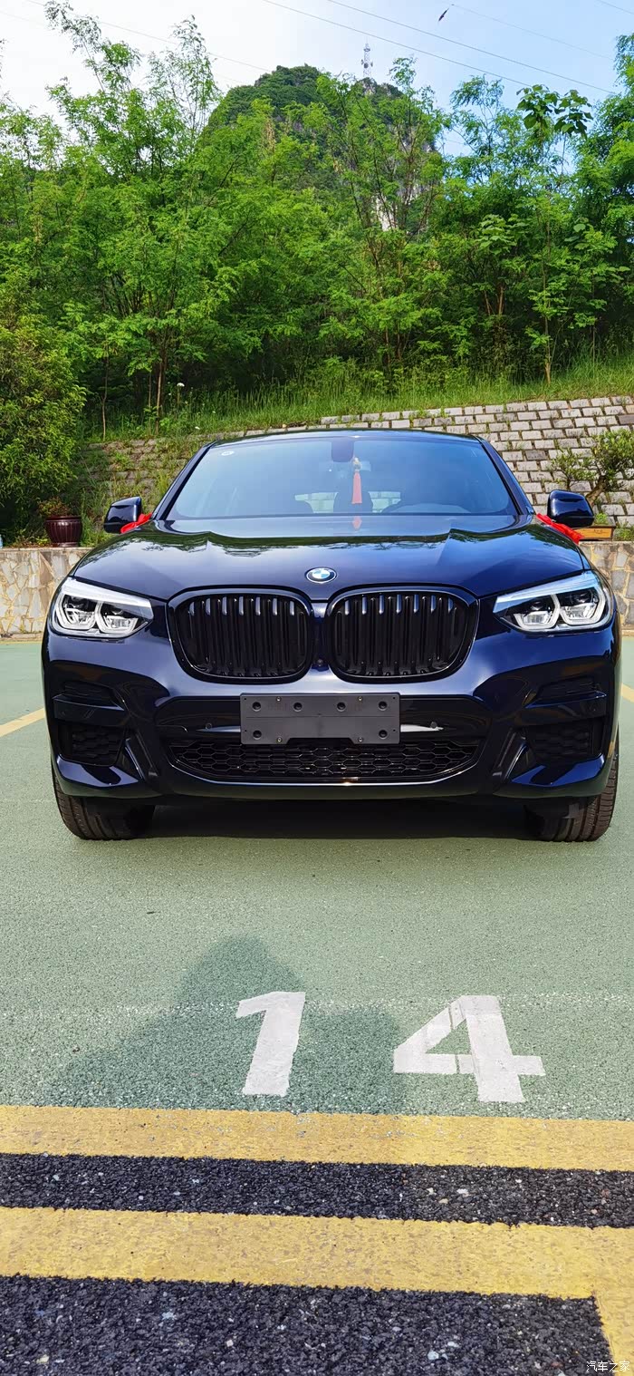 级别和颜色:敲定车型后,接着选级别,X4的2021款有三个档,作为一个中年男人的首选肯定是中间档了,没必要比肩最高档,也不要最低档,中不溜吧,哦了,xDrive 25i M运动曜夜套装。颜色是比较纠结的,媳妇喜欢白色、蓝色,我呢,喜欢黑色、蓝色,在4s店分别看到白色、蓝色和黑色车之后,最后决定选择炭黑色,这个颜色应该是宝马车2021年主推的颜色之一,在亮光下有点泛蓝。内饰服从领导意见:摩卡。