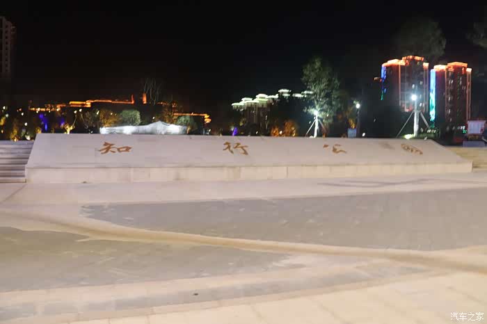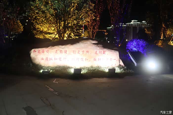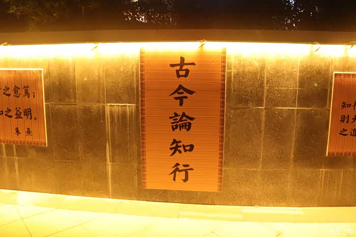 灯光照着大石头,这个特殊字体写的让我有点不太认识,同事说是“知行湖”,想想也是,毕竟这里的一切都是和“知行”有关。