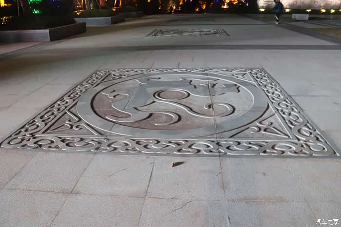 公园广场的地上雕刻着狮子一样的图腾,很威武