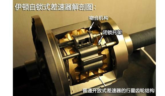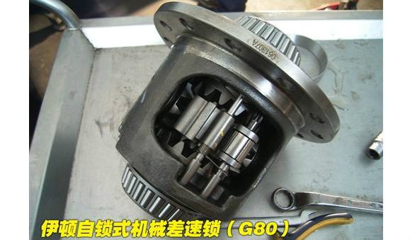 差速锁,顾名思义,就是通过传感装置阻止或锁止同一轴向拥有转速但已失去附着力(打滑)的车轮,使其停止转动。再简单的说明一下吧:任何一个车轮打滑时,差速锁就会让它停止转动,锁止它。同一轴向的差速器就会随机的把这部分因空转打滑而流失的动力,重新分配给另一个具有附着力的车轮,最终帮助车辆脱困。差速器与差速锁两者互为反作用。H5提供的是后传动轴上的伊顿机械组合式自锁差速器(可以“百度”一下伊顿机械式差速锁的工作原理)备选。