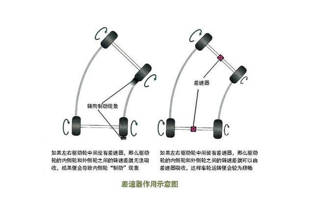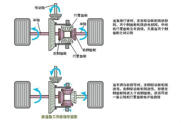 说到这里,还是再谈谈传统的差速器吧,它虽然也叫差速器,但与中央差速器的作用是不同的两个执行机构。传统意义的差速器,是安装在前、后两个半轴之间(或叫轮间差速器),是每辆汽车都有的;就像方向盘一样。我简单的举个例吧:一个轴上两端的轮子,转弯时,在弯道内侧的轮子必须得慢转;在弯道外侧的轮子必须得快转,这样左右两边的车轮就产生了转速差,只有这样才能保证这个轴和它两端的轮子同时平稳、顺利、安全的通过弯道。这就是差速器的一个最基础的动力分配的功能。