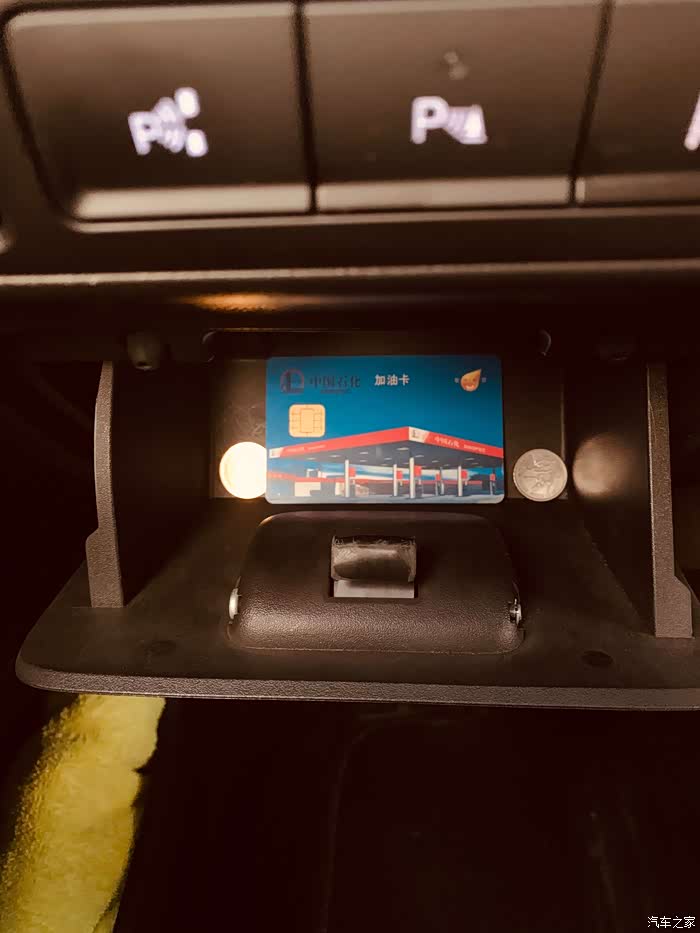 方向盘左下方的储物盒,主要是放加油卡和一些零钱硬币。在北京可以手机APP一键加油,停车场绝大多数支持手机支付,所以这个空间几乎很少打开了。